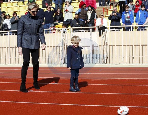 Ksiaze i ksiezna Monako z dziecmii na turnieju rugby - Sainte Devote Rugby Tournament