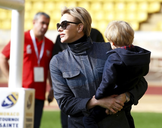 Ksiaze i ksiezna Monako z dziecmii na turnieju rugby - Sainte Devote Rugby Tournament