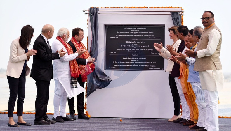 Brune Poirson, Jean-Yves Le Drian, Narendra Modi, Emmanuel Macron, Isabelle Kocher