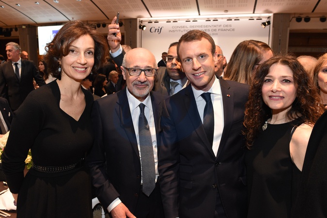 Audrey Azoulay, Francis Kalifat, Emmanuel Macron, Madame Kalifat.jpg