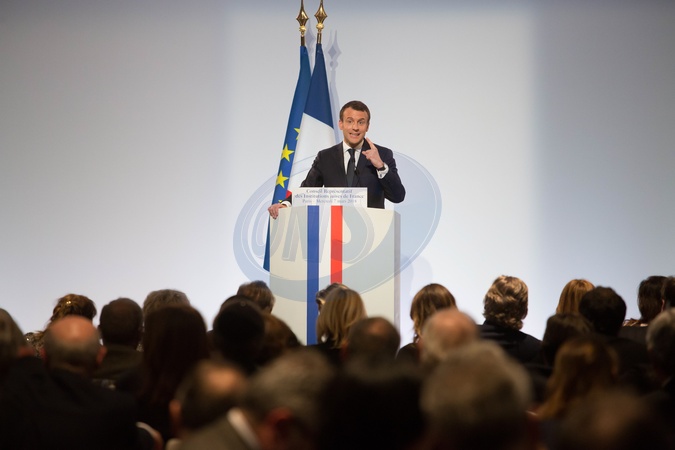 Macronowie na uroczystym spotkaniu z przedstawicielami instytuacji Zydowskich