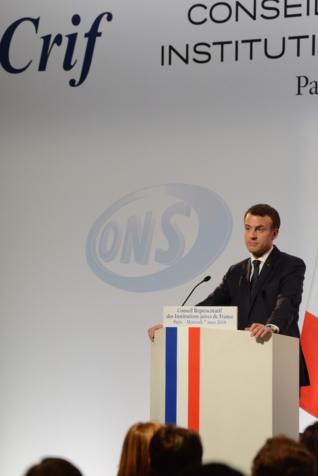 Macronowie na uroczystym spotkaniu z przedstawicielami instytuacji Zydowskich