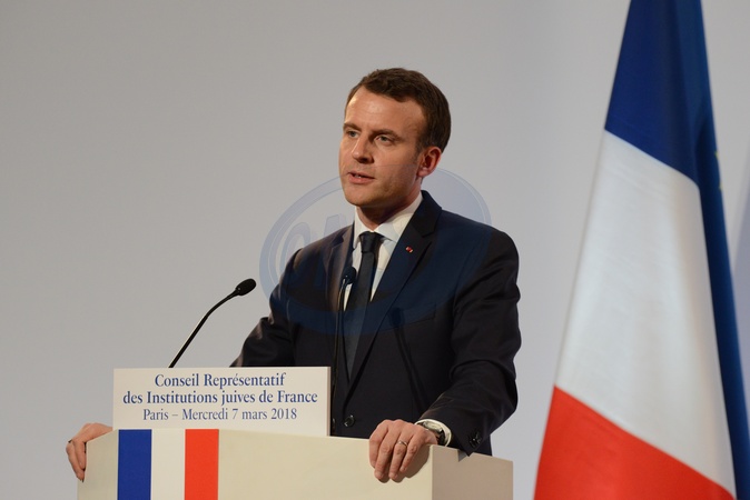 Macronowie na uroczystym spotkaniu z przedstawicielami instytuacji Zydowskich