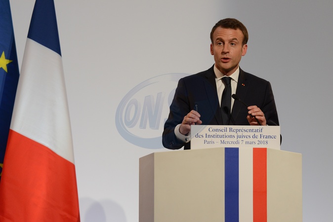 Macronowie na uroczystym spotkaniu z przedstawicielami instytuacji Zydowskich