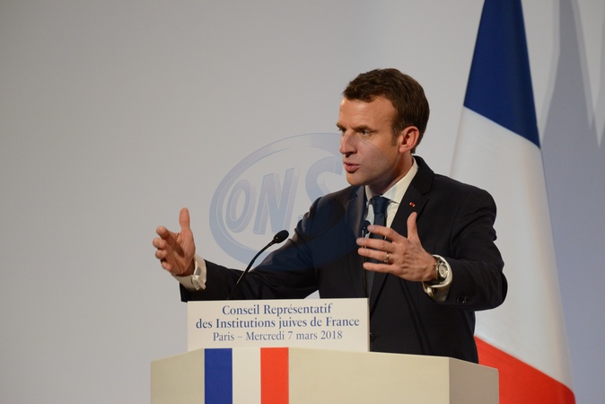 Macronowie na uroczystym spotkaniu z przedstawicielami instytuacji Zydowskich