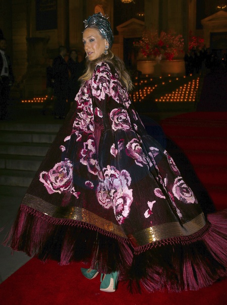Sarah Jessica Parker w bogato zdobionym plaszczu na przyjeciu Dolce Gabbana