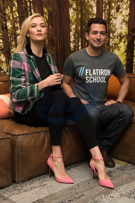 Karlie Kloss w kraciastej marynarce podczas dyskusji o przyszłosci umiejetnosci technicznych