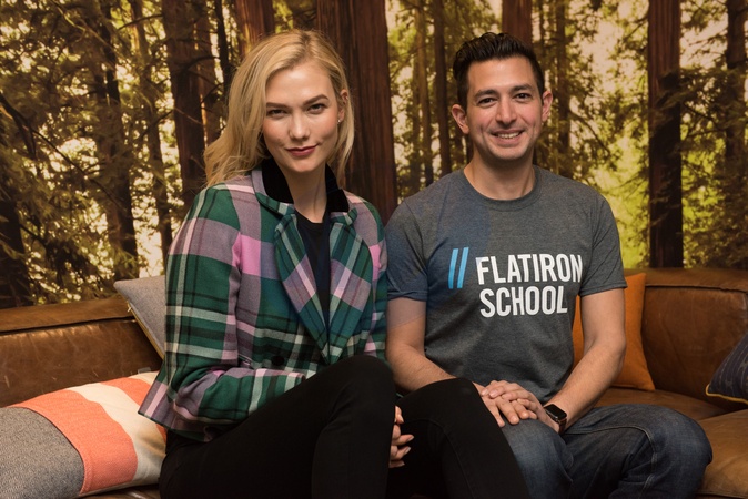 Karlie Kloss w kraciastej marynarce podczas dyskusji o przyszłosci umiejetnosci technicznych