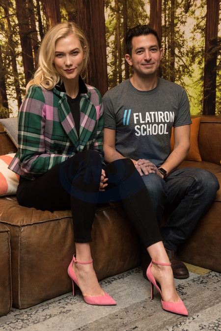 Karlie Kloss w kraciastej marynarce podczas dyskusji o przyszłosci umiejetnosci technicznych
