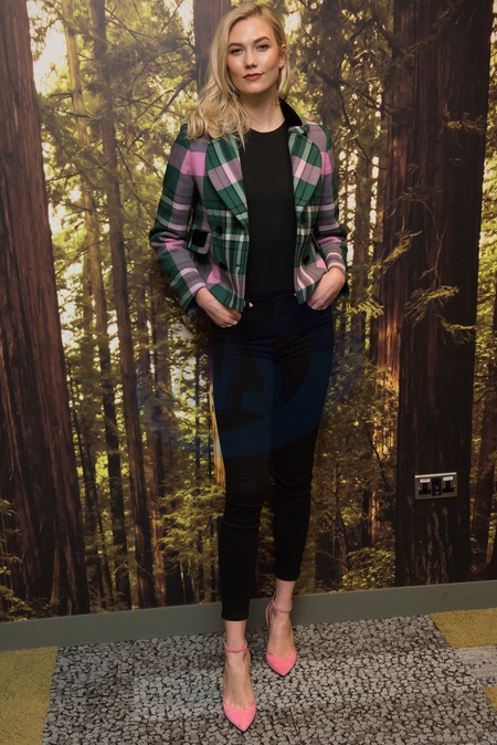 Karlie Kloss w kraciastej marynarce podczas dyskusji o przyszłosci umiejetnosci technicznych