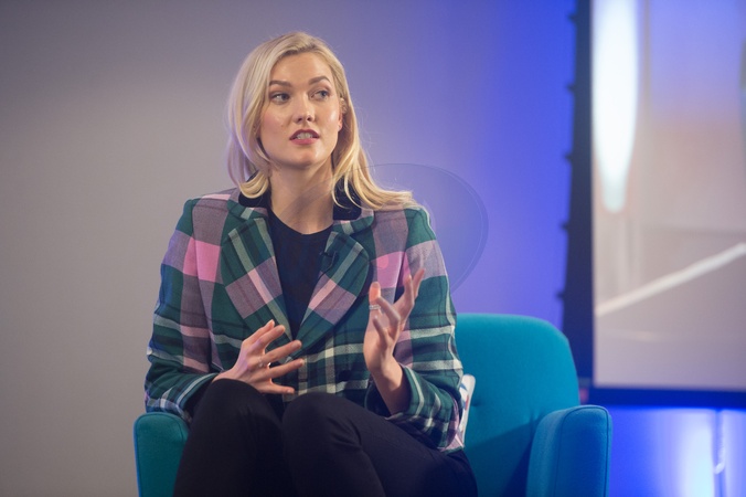 Karlie Kloss w kraciastej marynarce podczas dyskusji o przyszłosci umiejetnosci technicznych