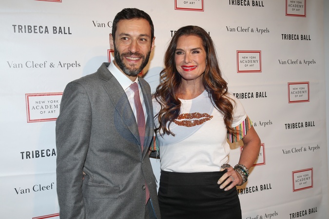 Brooke Shields w bluzce z ustami i fredzlami na Tribeca Ball 2018