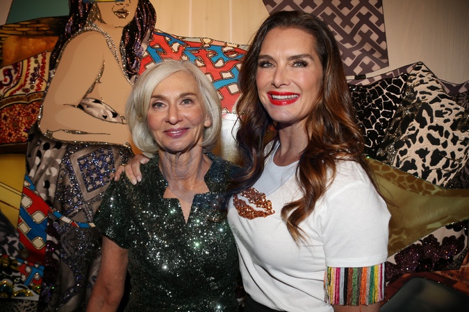 Brooke Shields w bluzce z ustami i fredzlami na Tribeca Ball 2018