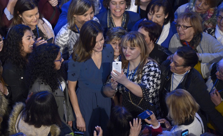 Krolowa Letizia w niebieskiej sukience na konferencji projektu - Digitized