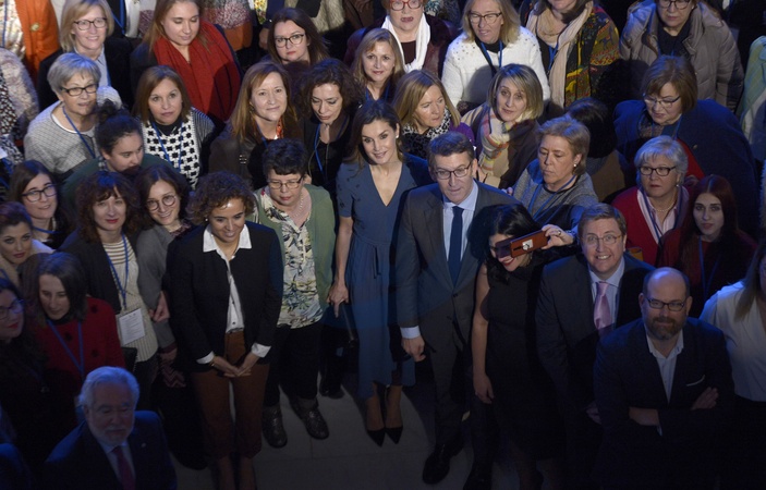 Krolowa Letizia w niebieskiej sukience na konferencji projektu - Digitized