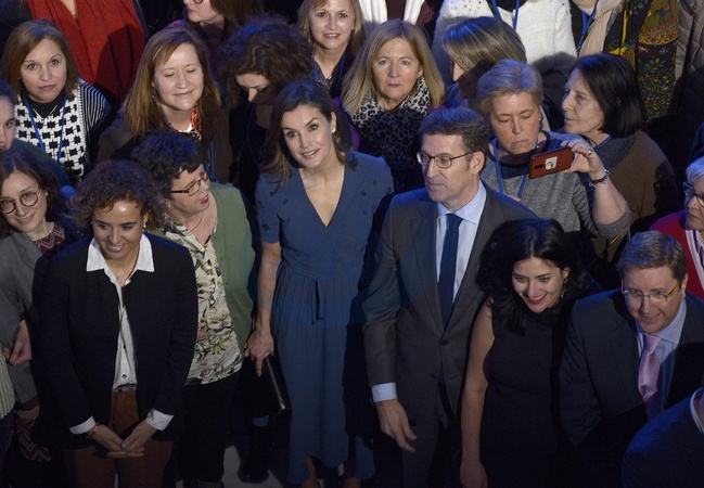 Krolowa Letizia w niebieskiej sukience na konferencji projektu - Digitized