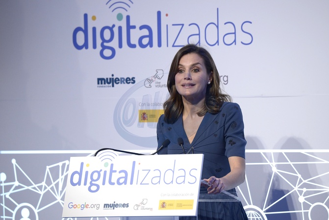 Krolowa Letizia w niebieskiej sukience na konferencji projektu - Digitized