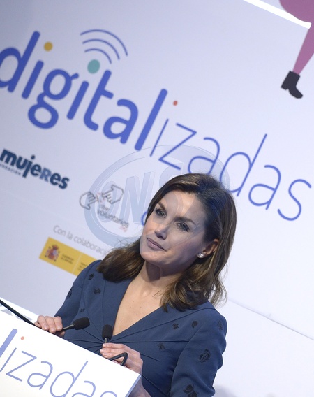 Krolowa Letizia w niebieskiej sukience na konferencji projektu - Digitized