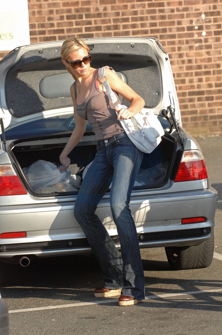 Abi Clancy wychodzi ze sklepu The Taskers Diy Store w Liverpoolu