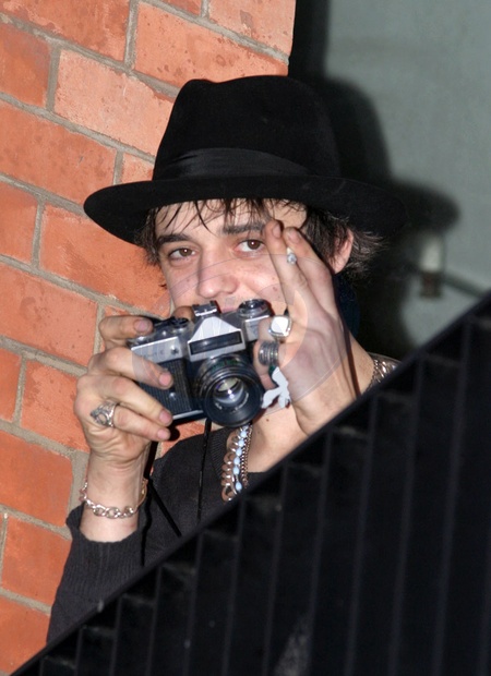 Pete Doherty zabawia sie z przyjaciolmi na tylach Hackney Empire w Londynie