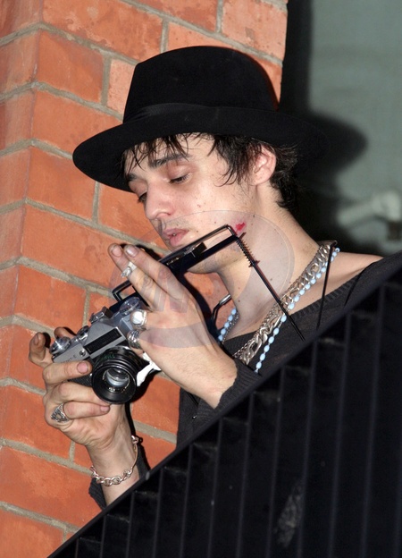 Pete Doherty zabawia sie z przyjaciolmi na tylach Hackney Empire w Londynie
