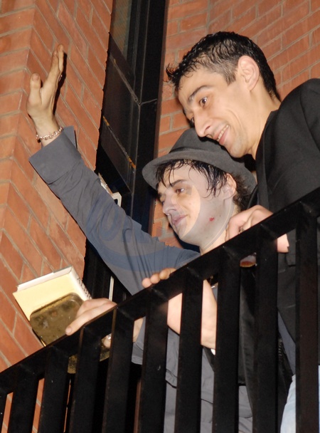 Pete Doherty zabawia sie z przyjaciolmi na tylach Hackney Empire w Londynie