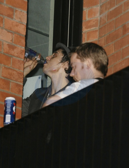 Pete Doherty zabawia sie z przyjaciolmi na tylach Hackney Empire w Londynie