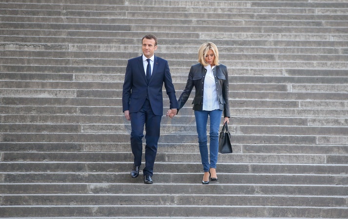 Brigitte Macron i Emmanuel Macron trzymaja sie za rece, w drodze na wywiad do Palais de Chaillot