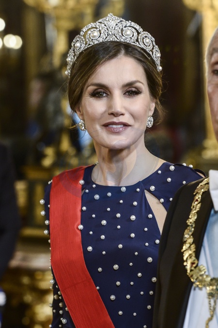 Krolowa Letizia w granatowej sukni, obszytej perelkami