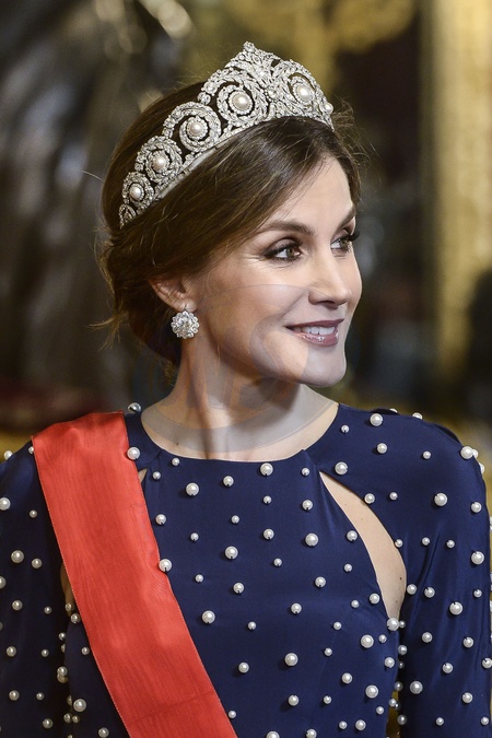 Krolowa Letizia w granatowej sukni, obszytej perelkami