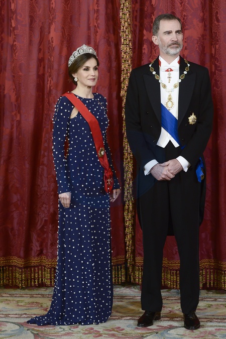 Krolowa Letizia w granatowej sukni, obszytej perelkami