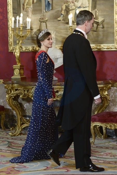 Krolowa Letizia w granatowej sukni, obszytej perelkami