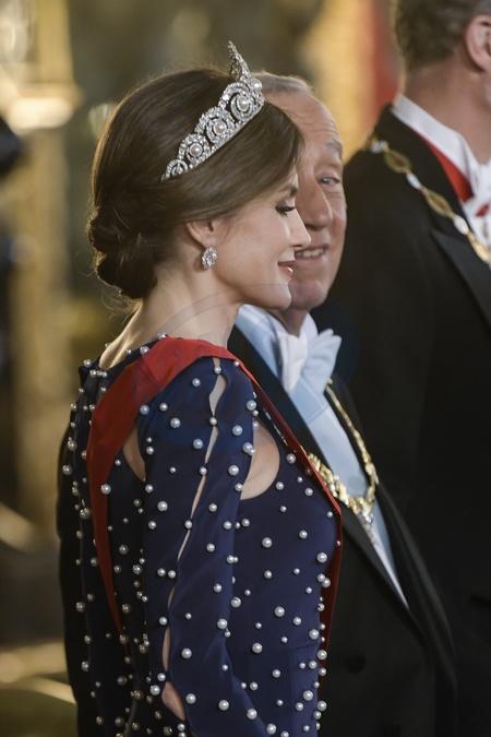 Krolowa Letizia w granatowej sukni, obszytej perelkami