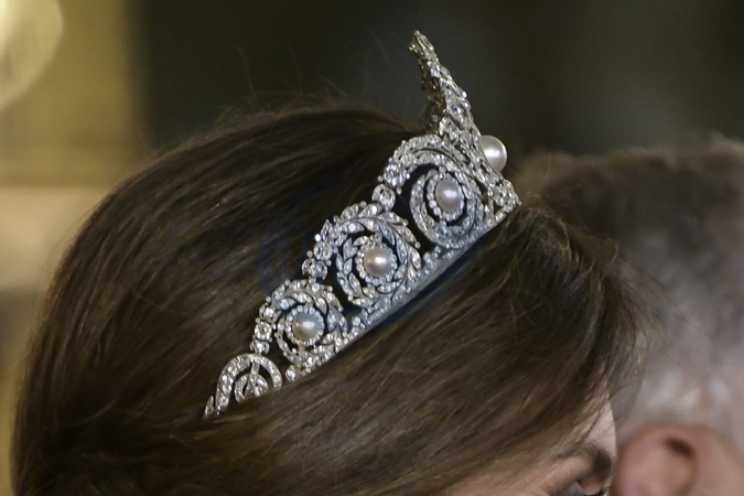 Krolowa Letizia w granatowej sukni, obszytej perelkami