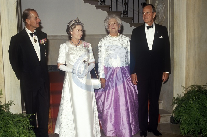 Barbara Bush, George H.W. Bush, krolowa Elzbieta II, ksiaze Filip