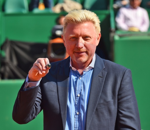Boris Becker z plastrem na nosie chwali sie pierscieniem Hall of Fame