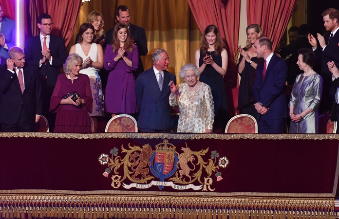 Krolowa Elzbieta, Karol, William, Sophie, Ludwika Windsor, Camilla, Beatrice, Eugenie, Anna, Harry, Andrzej