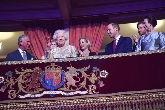 Krolowa Elzbieta,Karol, William, Harry, Anna, Sophie, Ludwika Windsor.jpg