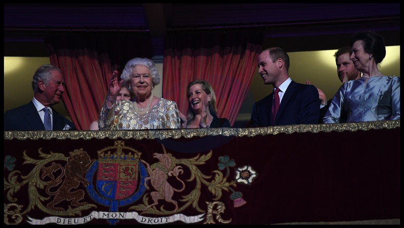 Ksiaze Karol, Krolowa Elzbieta, ksiaze William, Harry, Anna