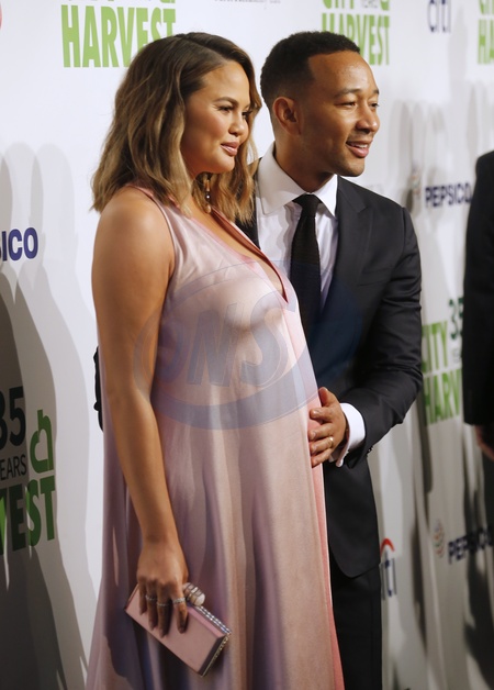 John Legend i jego zona Chrissy Teigen w zaawansowanej ciazy na City Harvest Gala