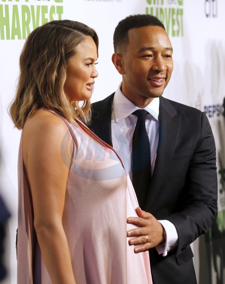 John Legend i jego zona Chrissy Teigen w zaawansowanej ciazy na City Harvest Gala