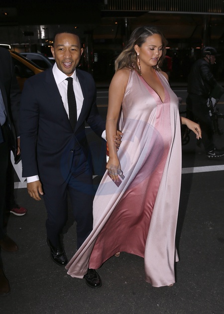 John Legend i jego zona Chrissy Teigen w zaawansowanej ciazy na City Harvest Gala