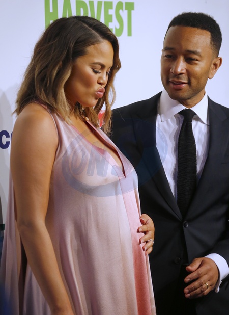 John Legend i jego zona Chrissy Teigen w zaawansowanej ciazy na City Harvest Gala