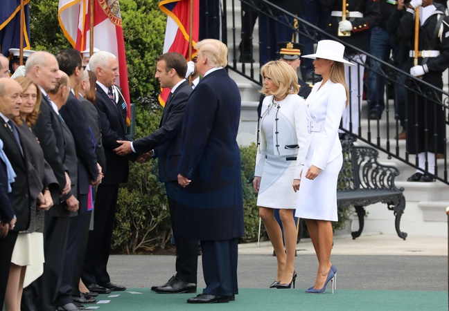 Brigitte i Emmanuel Macron, Melania i Donald Trump przed Bialym Domem - duzo zdjec