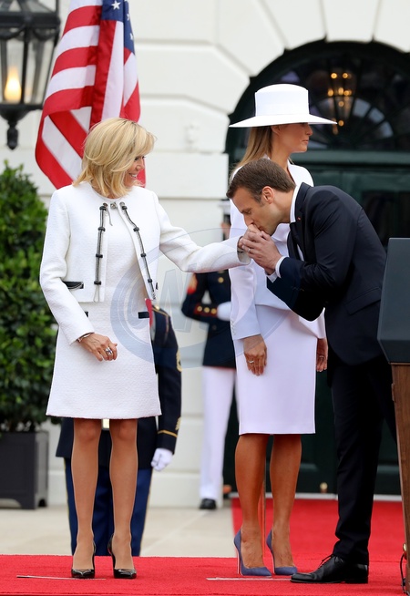 Brigitte i Emmanuel Macron, Melania i Donald Trump przed Bialym Domem - duzo zdjec