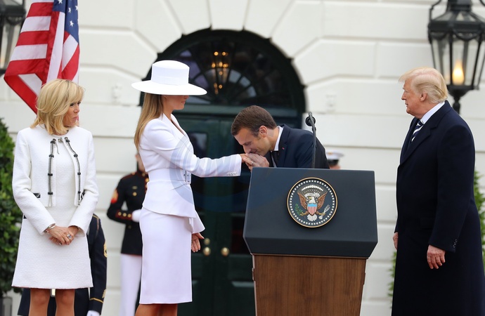 Brigitte i Emmanuel Macron, Melania i Donald Trump przed Bialym Domem - duzo zdjec