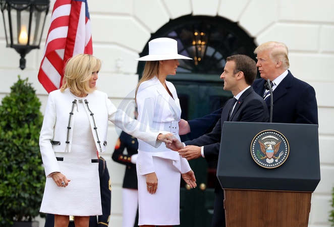 Brigitte i Emmanuel Macron, Melania i Donald Trump przed Bialym Domem - duzo zdjec