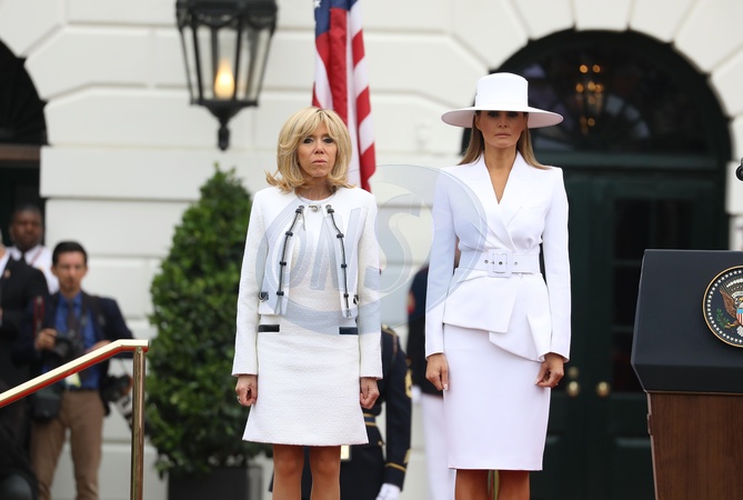 Brigitte i Emmanuel Macron, Melania i Donald Trump przed Bialym Domem - duzo zdjec