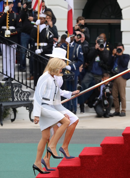 Brigitte i Emmanuel Macron, Melania i Donald Trump przed Bialym Domem - duzo zdjec