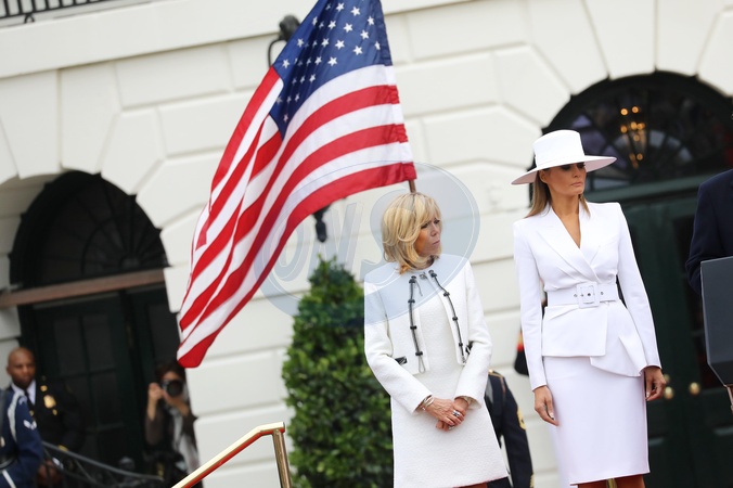 Brigitte i Emmanuel Macron, Melania i Donald Trump przed Bialym Domem - duzo zdjec